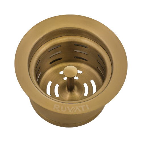 Ruvati Deep Basket Strainer Drain for Kitchen Sinks all Metal 3-1/2 inch – Brushed Gold Satin Brass – RVA1027GG