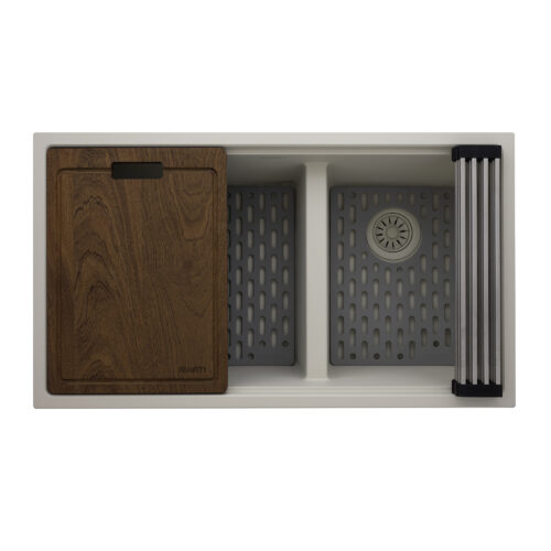 Ruvati has revolutionized kitchen design with its innovative workstation sinks, aiming to provide homeowners with an efficient and organized kitchen space. These sinks are engineered to minimize mess and maximize functionality, setting a new standard in modern kitchen design. The unique feature of these sinks lies in their incorporation of built-in accessories that seamlessly slide on integrated tracks, allowing for a highly customizable and versatile kitchen workspace.