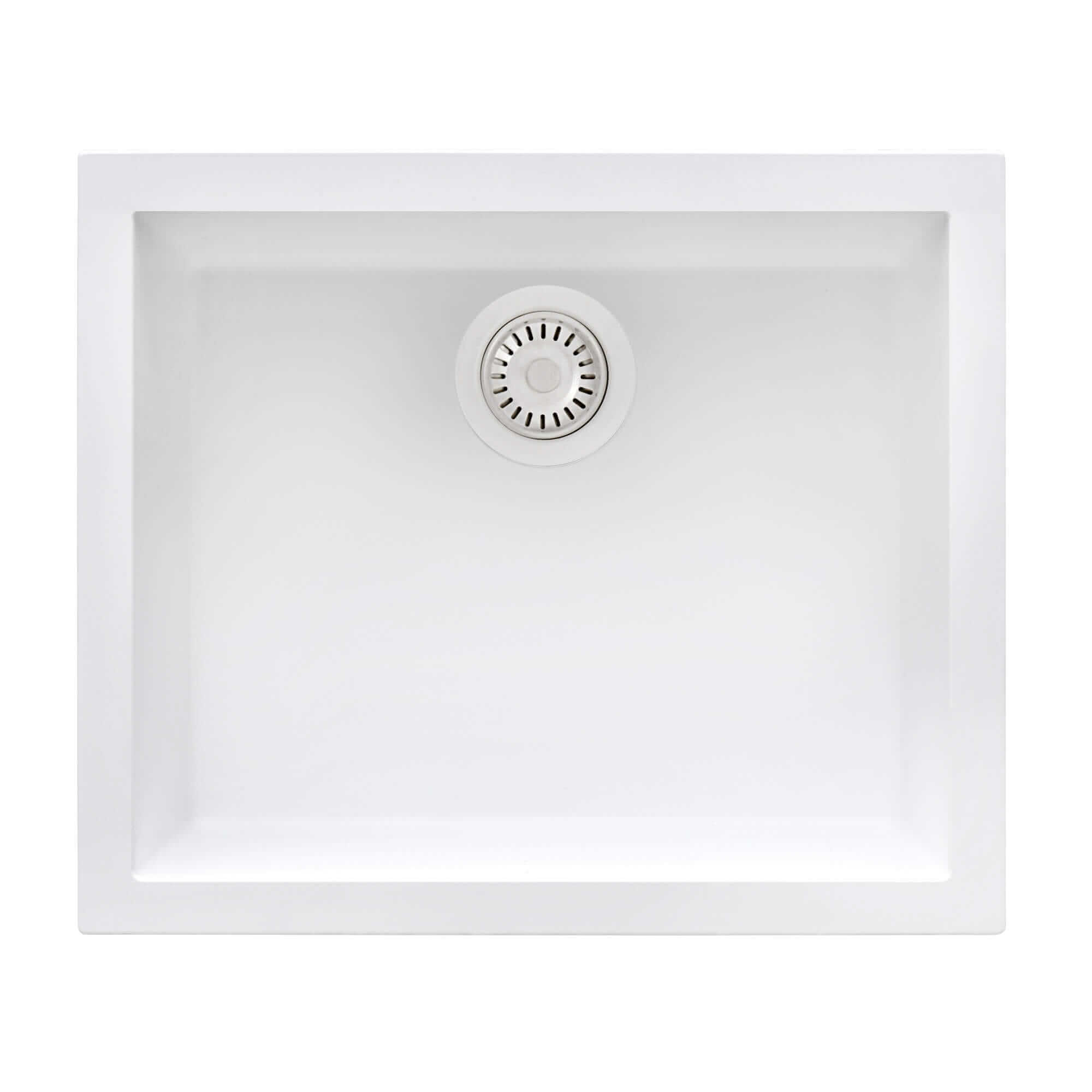 - INCLUDED IN BOX: Sink, cutting board, cut-out template, rinse grid, basket strainer, and mounting brackets.