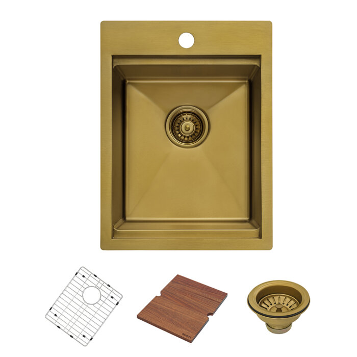 Ruvati 15 x 20 inch Polished Brass Matte Gold Stainless Steel Workstation Wet Bar Sink Drop-in Topmount – RVH8210GG
