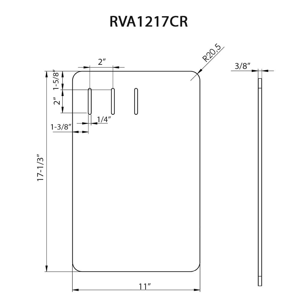 - OVERALL DIMENSIONS: 17-1/8″ long by 11″ wide by 3/10″ thick