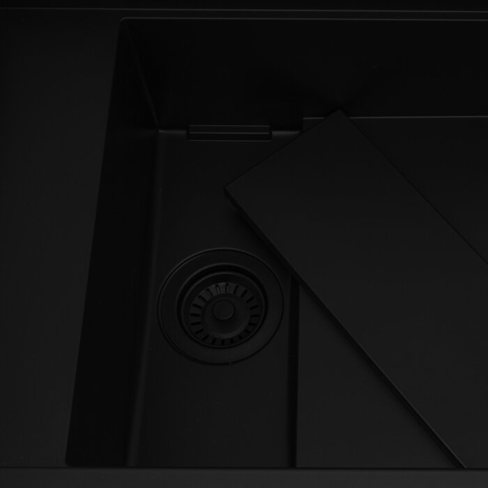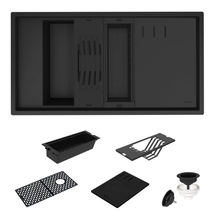 - INCLUDED IN BOX: sink, solid composite cutting board, dish drying rack, solid composite colander, matching color basket strainer drain assembly, installation guide.