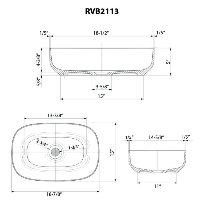 - INTERIOR BOWL DIMENSIONS: 18-1/2″ (wide) x 14-5/8″ (front-to-back) x 4-3/8″ (bowl depth)