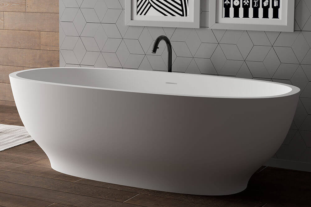 Introducing Ruvati’s latest innovation: Italian-made epiStone freestanding bathtubs and vessel sinks are the perfect addition to your modern bathroom. EpiStone is an engineered stone that we developed using state-of-the-art technology to bring exceptional strength and beauty to our bathroom collection. It is composed of 70% crushed natural stone and minerals bonded with a proprietary resin that gives the material its strength and durability. Naturally beautiful with a look similar to real stone, the epiStone material is strong, durable, and has a luxurious satin finish that is silky to the touch. Made in Italy, the Sinatra collection of freestanding bathtubs and vessel sinks are a luxurious statement piece accompanied by easy installation and creative placement options. Available in white, gold, and black, the Sinatra collection is the most modern option for your bathroom renovation.