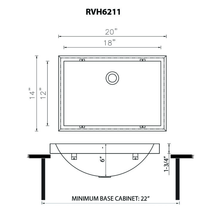 - INCLUDED IN BOX: Sink, popup drain, mounting clips.