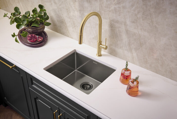 With an innovative nano-PVD finish, the Terraza collection brings color to the world of stainless steel. Now you can match your kitchen appliances with your kitchen sink.