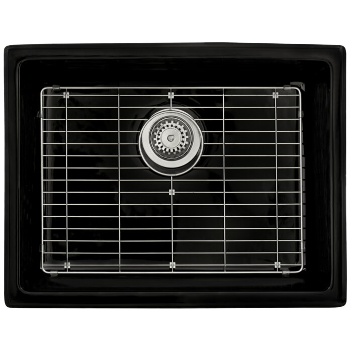 - INCLUDED IN BOX: Fireclay sink, stainless steel bottom grid, basket strainer drain assembly, installation guide.