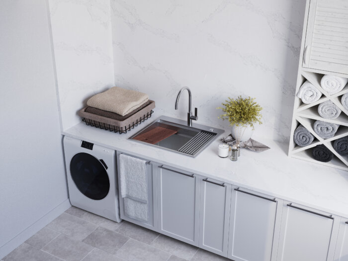 Recognized for profound depth, heavy-duty stainless steel, and workstation capabilities, the Alto collection from Ruvati is specially designed for your home laundry, mud, or utility room. The added capability of a workstation sink takes your laundry space to a new level.