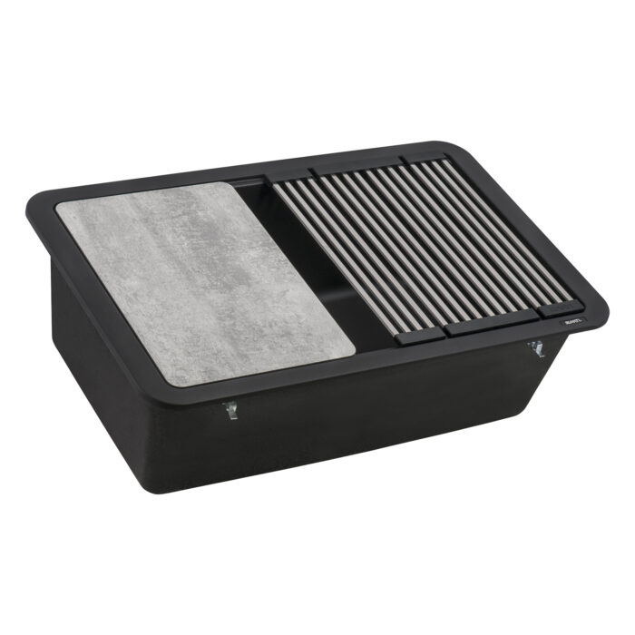 Crafted in Italy, the epiStage collection combines workstation functionality with the beauty of granite composite sinks. The workstation design features a built-in platform for each unique accessory.