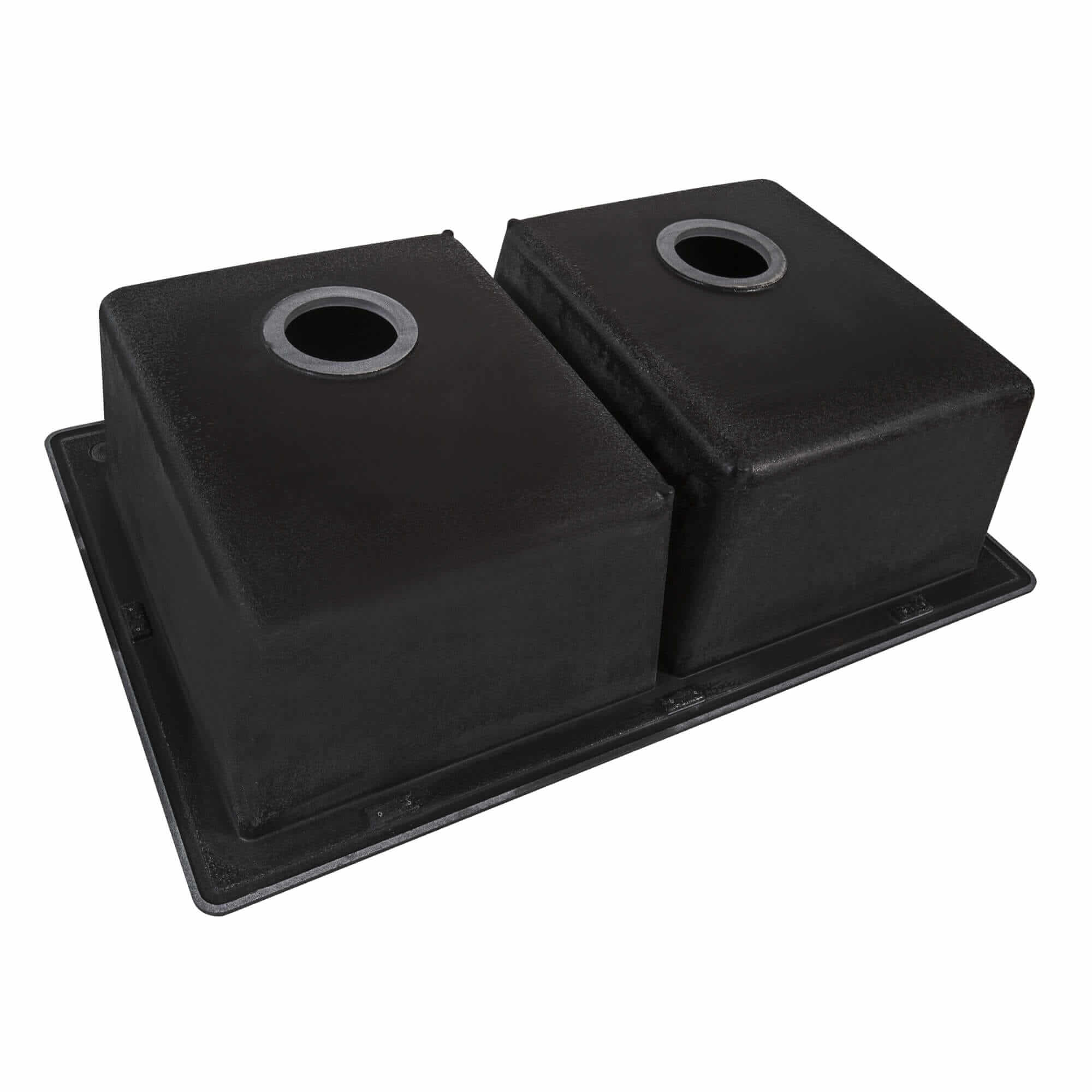 Ruvati 32 x 19 inch Granite Composite Undermount Double Bowl Kitchen Sink – Midnight Black – RVG2388BK
