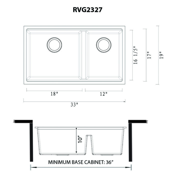 - INTERIOR BOWL DIMENSIONS: 18″ x 17″ (left) x 12″ x 17″ (right) x 10″ (bowl depth)