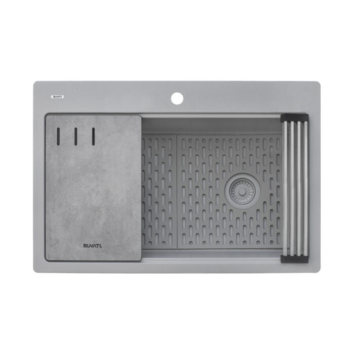 Ruvati 33-inch Granite Composite Workstation Drop-in Topmount Kitchen Sink Silver Gray – RVG1302GR