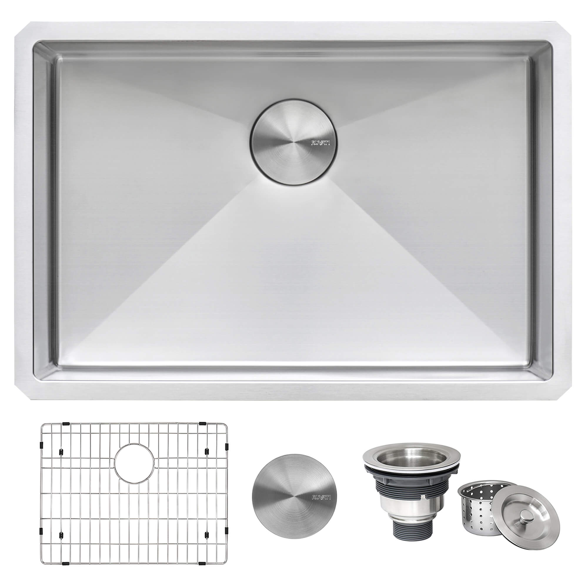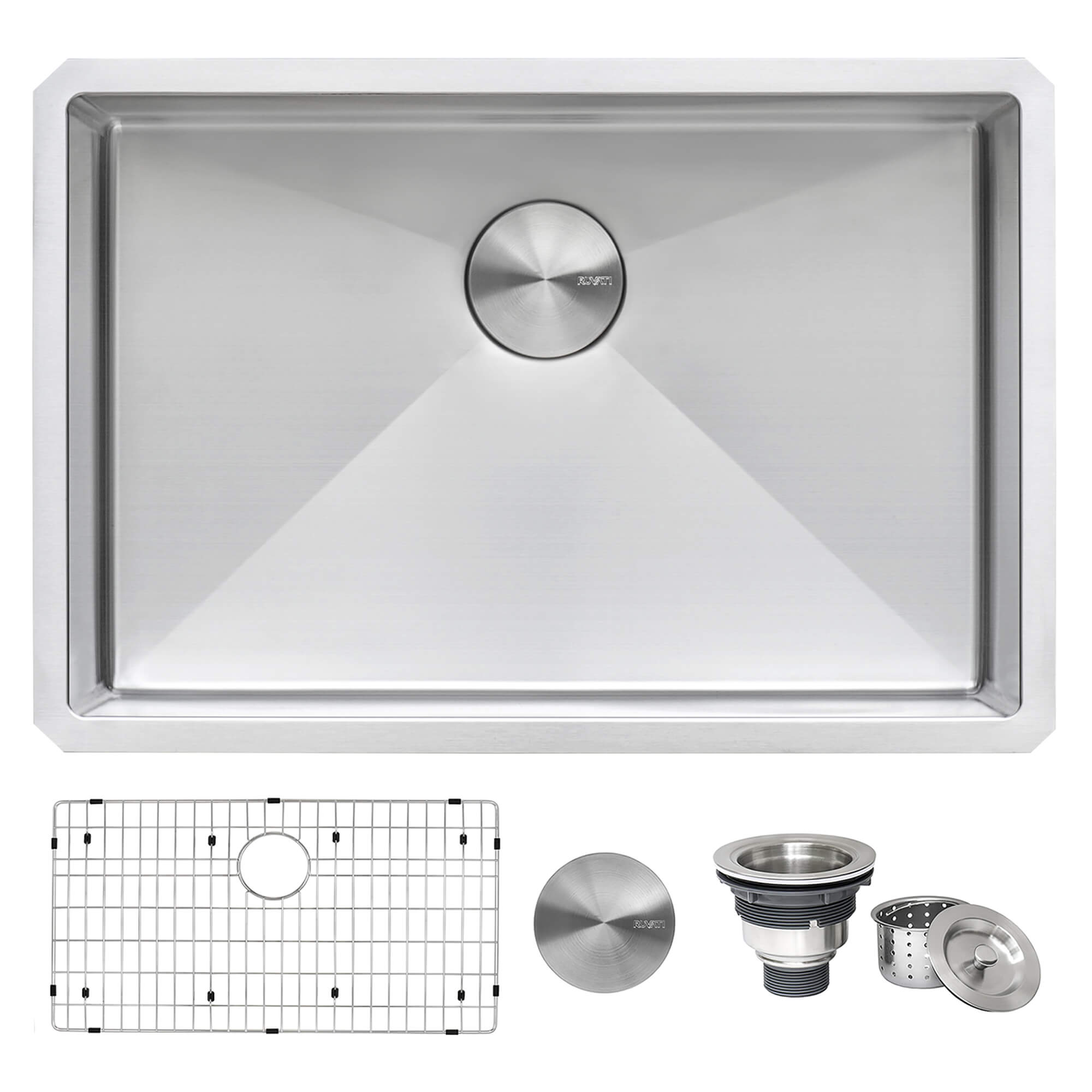 - INCLUDED IN BOX: Sink, solid wood cutting board, matching roll-up drying rack, matching color basket strainer drain assembly, stainless steel bottom rinse grid, installation guide.