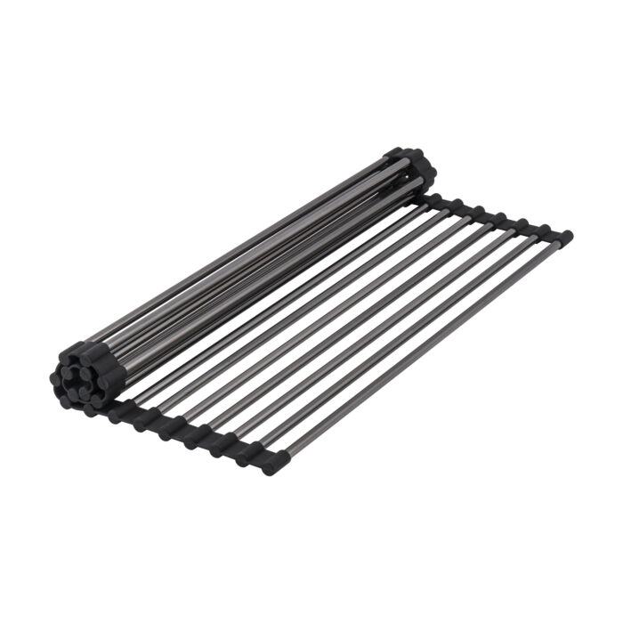 - MATCHING ROLL-UP DRYING RACK: Constructed of stainless steel and flexible silicone ‐ folds neatly for easy storage and is dishwasher safe.