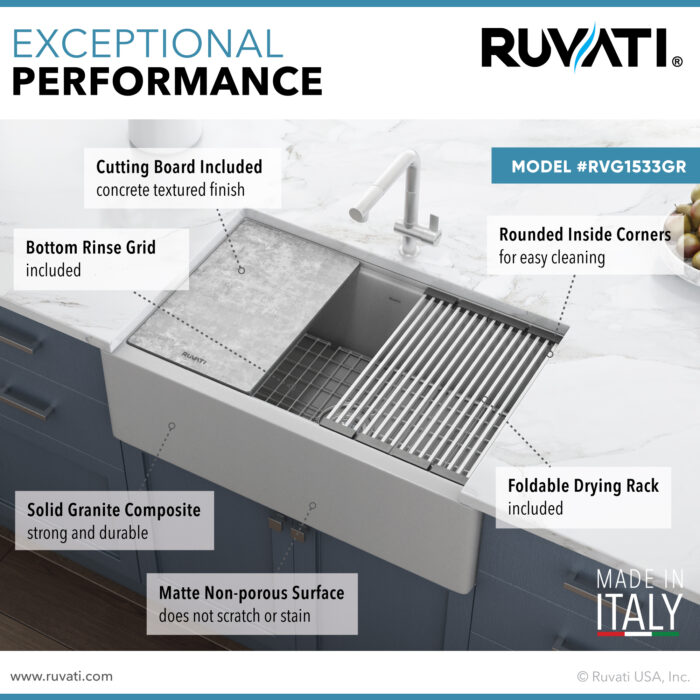 - MADE IN ITALY: Each Ruvati granite sink is meticulously crafted by skilled Italian artisans.