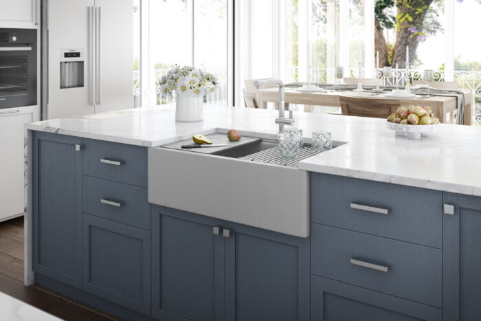 Almost too good to be true: The epiCast collection from Ruvati presents granite, workstation, and apron-front features all in one sink. Crafted in Italy and constructed from 80% crushed natural granite, each sink has extreme durability and the look of real stone. The epiCast collection features a reversible design and can be installed depending on your style preference – one side of the sink has a rounded corner apron-front suitable for traditional decors and the other with a sharp corner for a more contemporary look. Available in a range of elegant colors and accompanied by worthwhile accessories, the epiCast collection provides you with a truly customizable experience to fit your design and style desires.