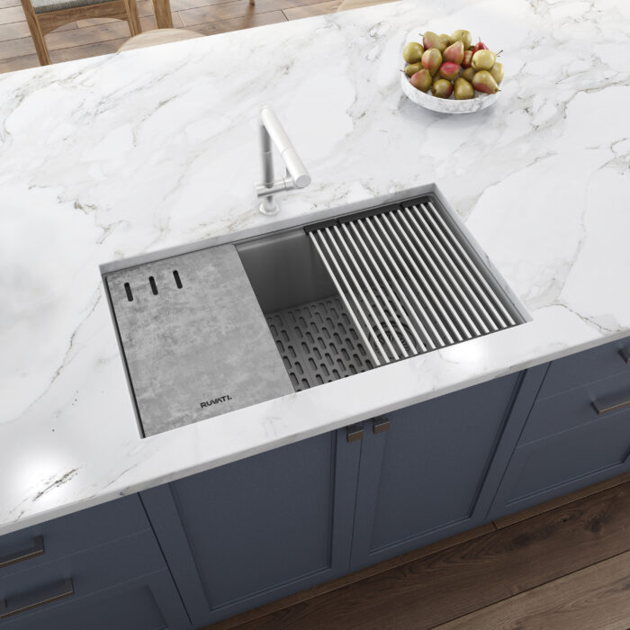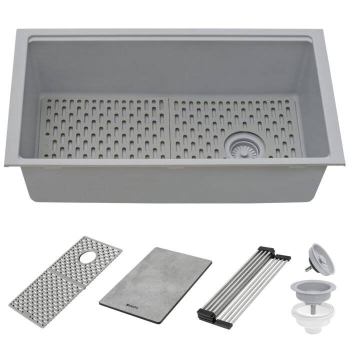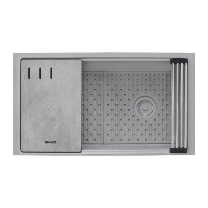 Ruvati 33-inch Undermount Workstation Granite Composite Kitchen Sink Silver Gray – RVG2302GR