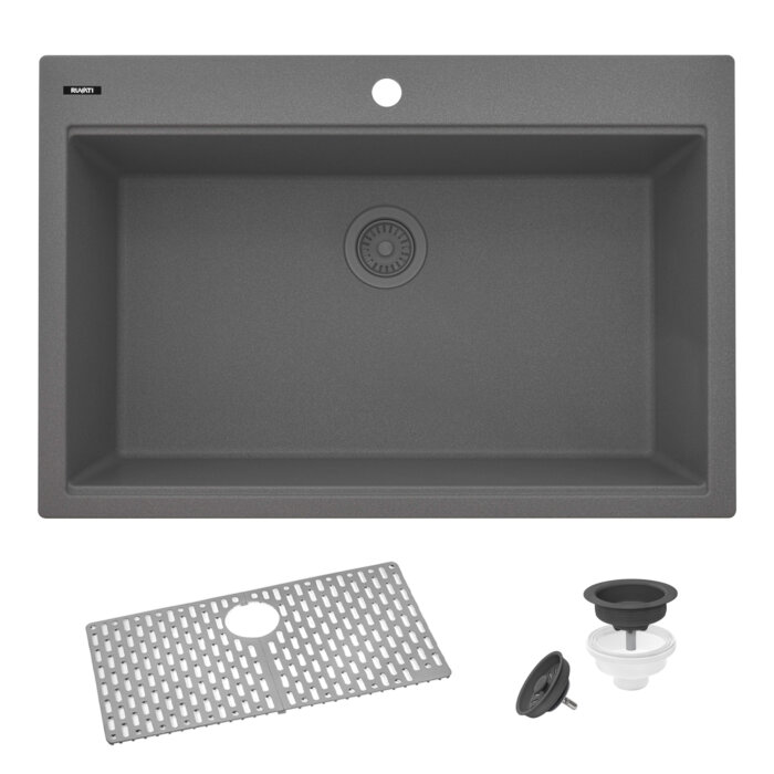 Ruvati 33 x 22 inch epiGranite Drop-in Topmount Granite Composite Single Bowl Kitchen Sink – Urban Gray – RVG1080UG