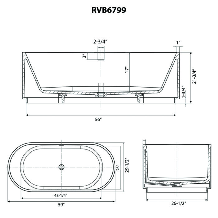 CENTER DRAIN PLACEMENT: Standard drain opening (3-1/4″ inches).