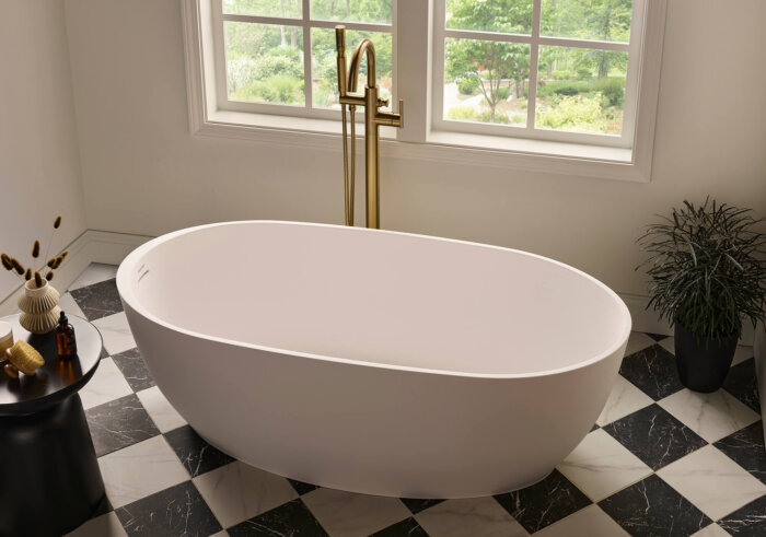 Ruvati 59-inch Matte White epiStone Solid Surface Oval Freestanding Bath Tub Canali – RVB6744WH