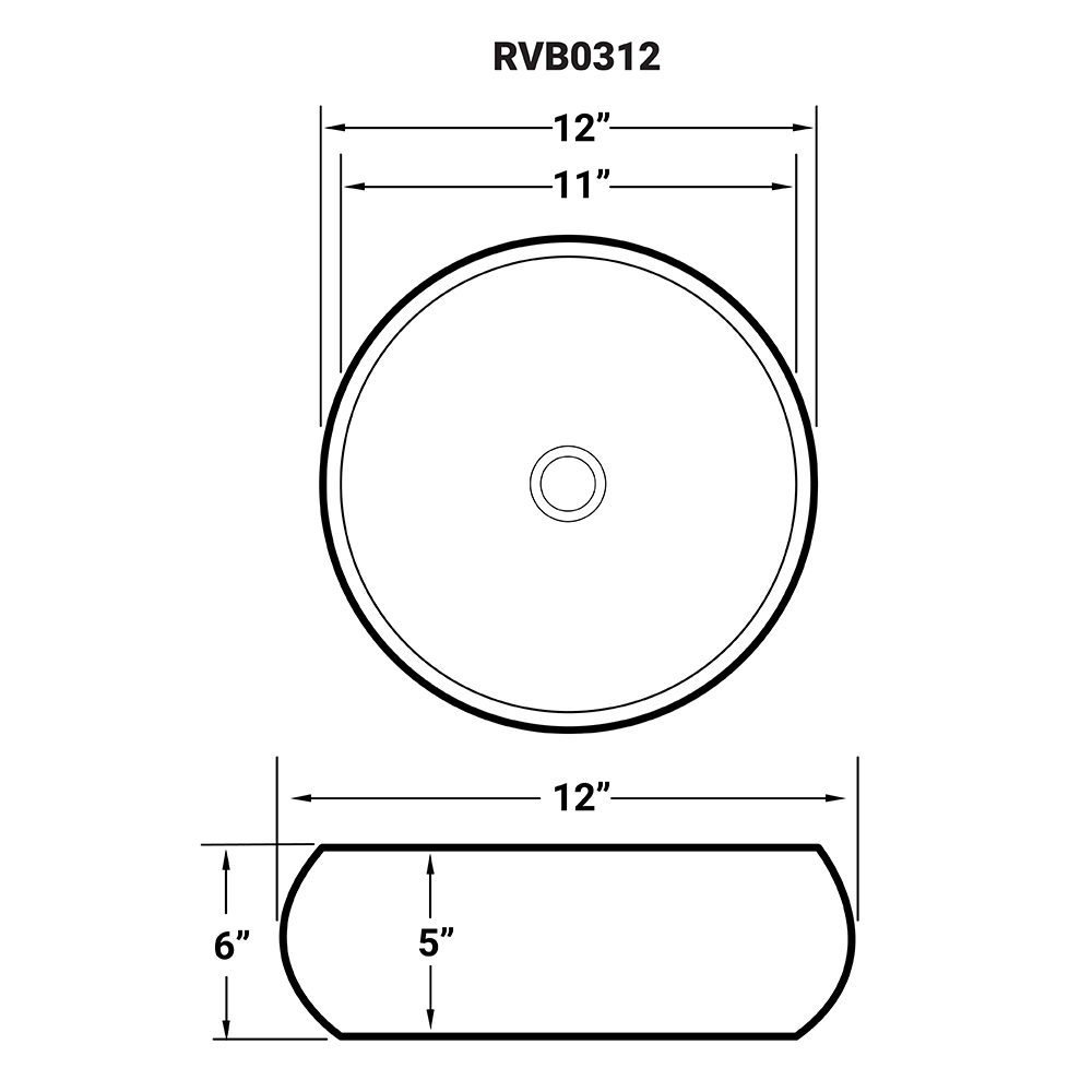 Ruvati 12 inch Bathroom Vessel Sink Round White Circular Above Counter Porcelain Ceramic – RVB0312
