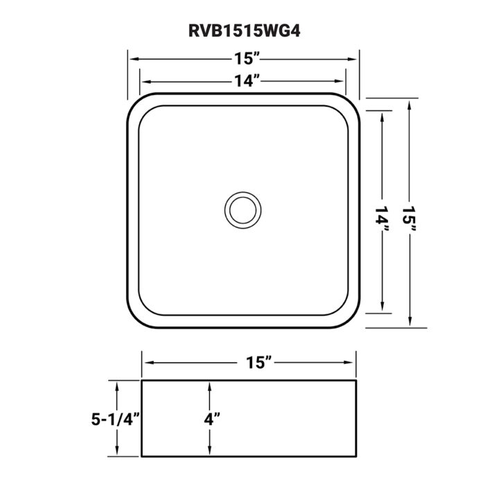 - INTERIOR BOWL DIMENSIONS: 14″ (wide) x 14″ (front-to-back) x 4″ (bowl depth)