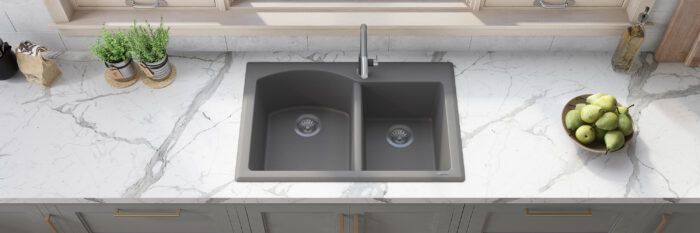 - EXTERIOR DIMENSIONS: 33″ (wide) x 22″ (front-to-back). Standard size will retrofit into most existing topmount sink cutouts.