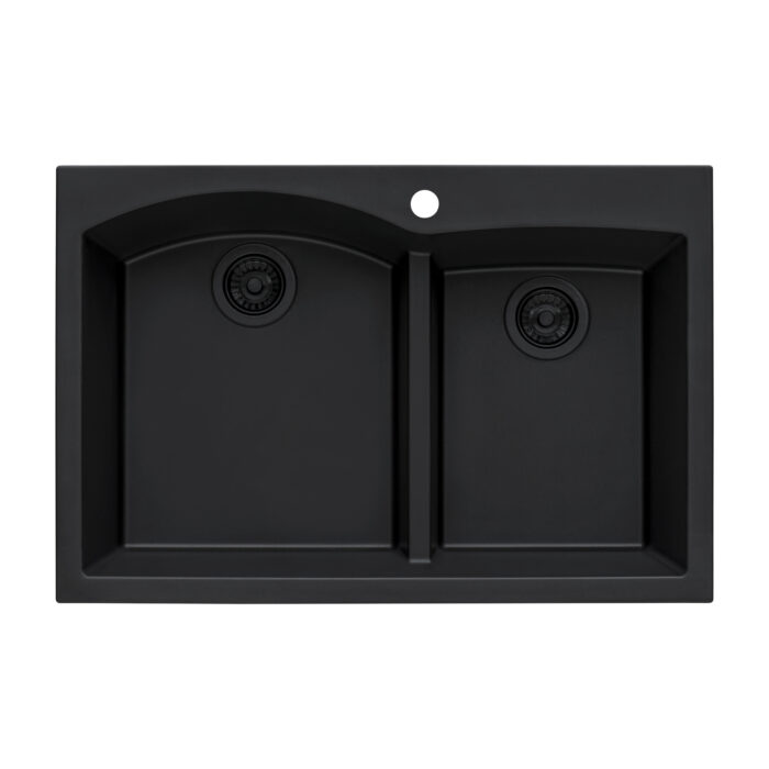 Ruvati 33 x 22 inch epiGranite Drop-in Topmount Granite Composite Double Bowl Kitchen Sink – Midnight Black – RVG1345BK