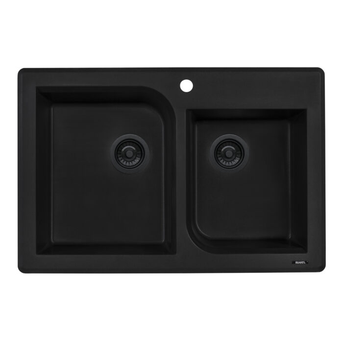 Ruvati 33 x 22 inch epiGranite Dual-Mount Granite Composite Double Bowl Kitchen Sink – Midnight Black – RVG1396BK