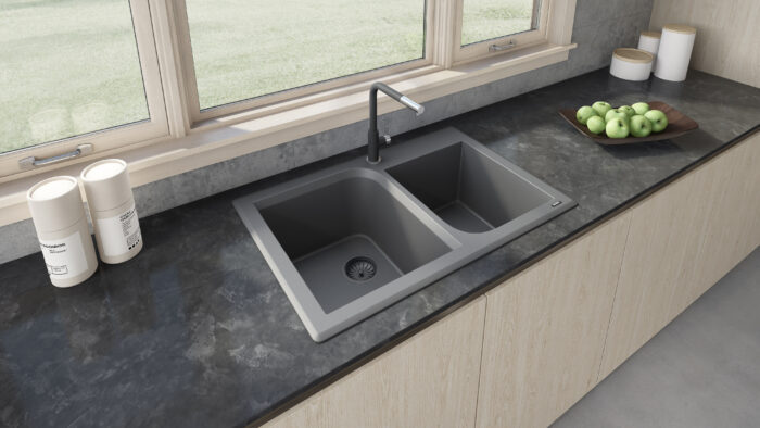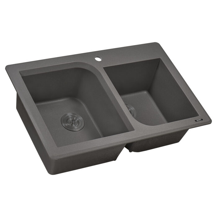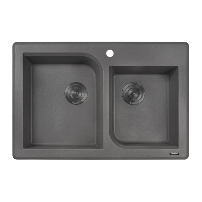 Ruvati 33 x 22 inch epiGranite Dual-Mount Granite Composite Double Bowl Kitchen Sink – Urban Gray – RVG1396GR