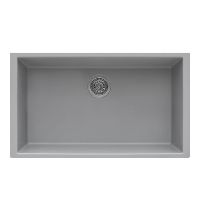 Ruvati 30 x 18 inch Granite Composite Undermount Single Bowl Kitchen Sink – Silver Gray – RVG2030GR