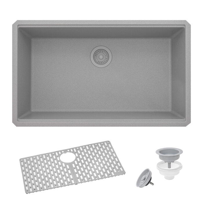 Ruvati 32 x 19 inch Granite Composite Undermount Single Bowl Kitchen Sink – Silver Gray – RVG2080GR