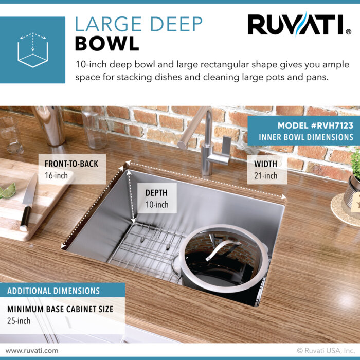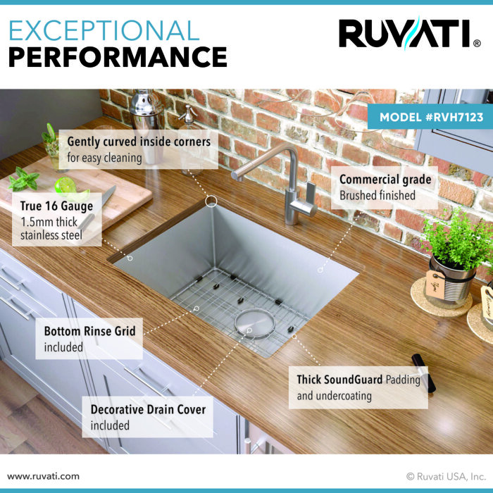 Be the first to review “Ruvati 23-inch Undermount Stainless Steel Kitchen Sink 16 Gauge Rounded Corners Single Bowl – RVH7123”