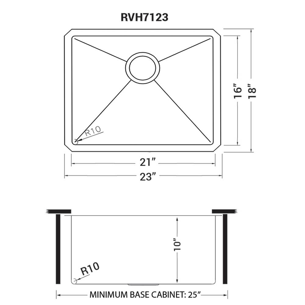 Ruvati 23-inch Undermount Stainless Steel Kitchen Sink 16 Gauge Rounded Corners Single Bowl – RVH7123