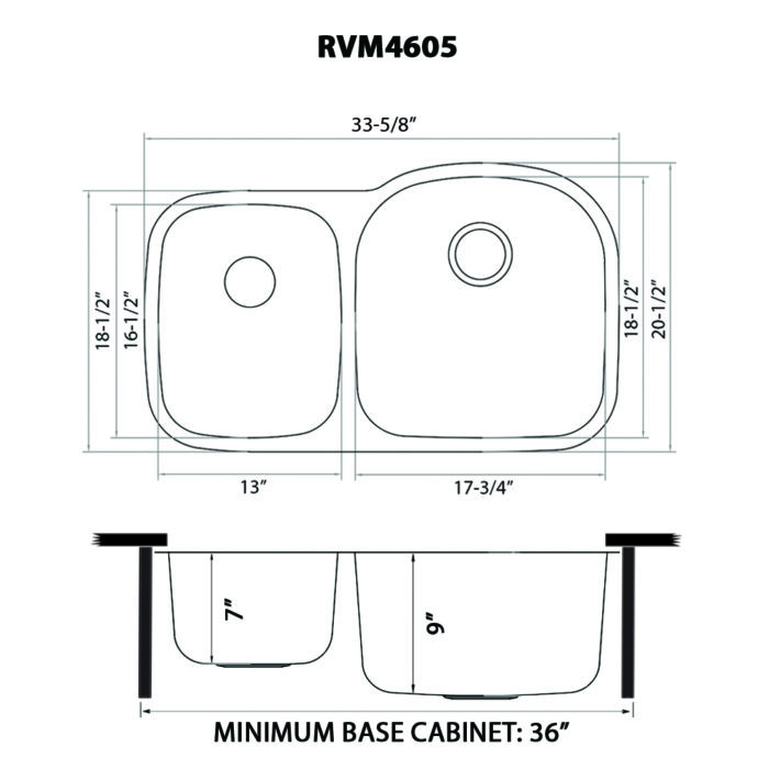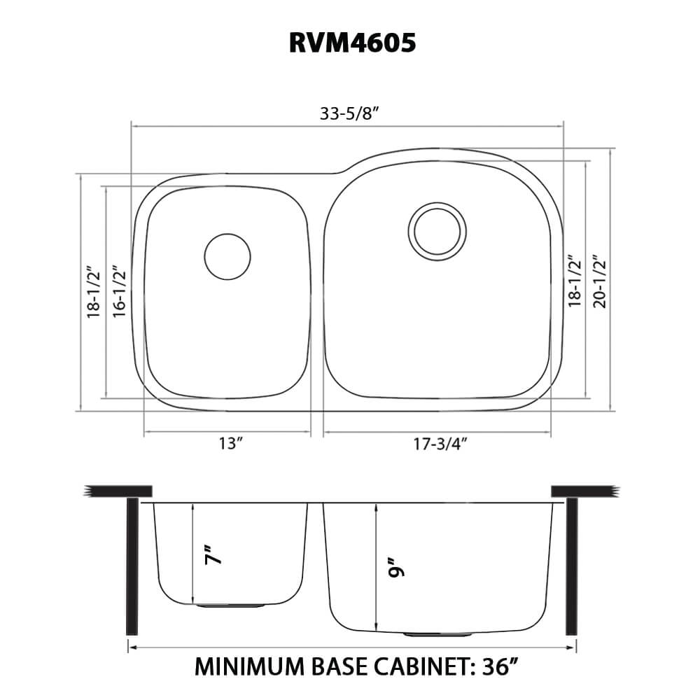 Ruvati 34-inch Undermount 40/60 Double Bowl 16 Gauge Stainless Steel Kitchen Sink – RVM4605