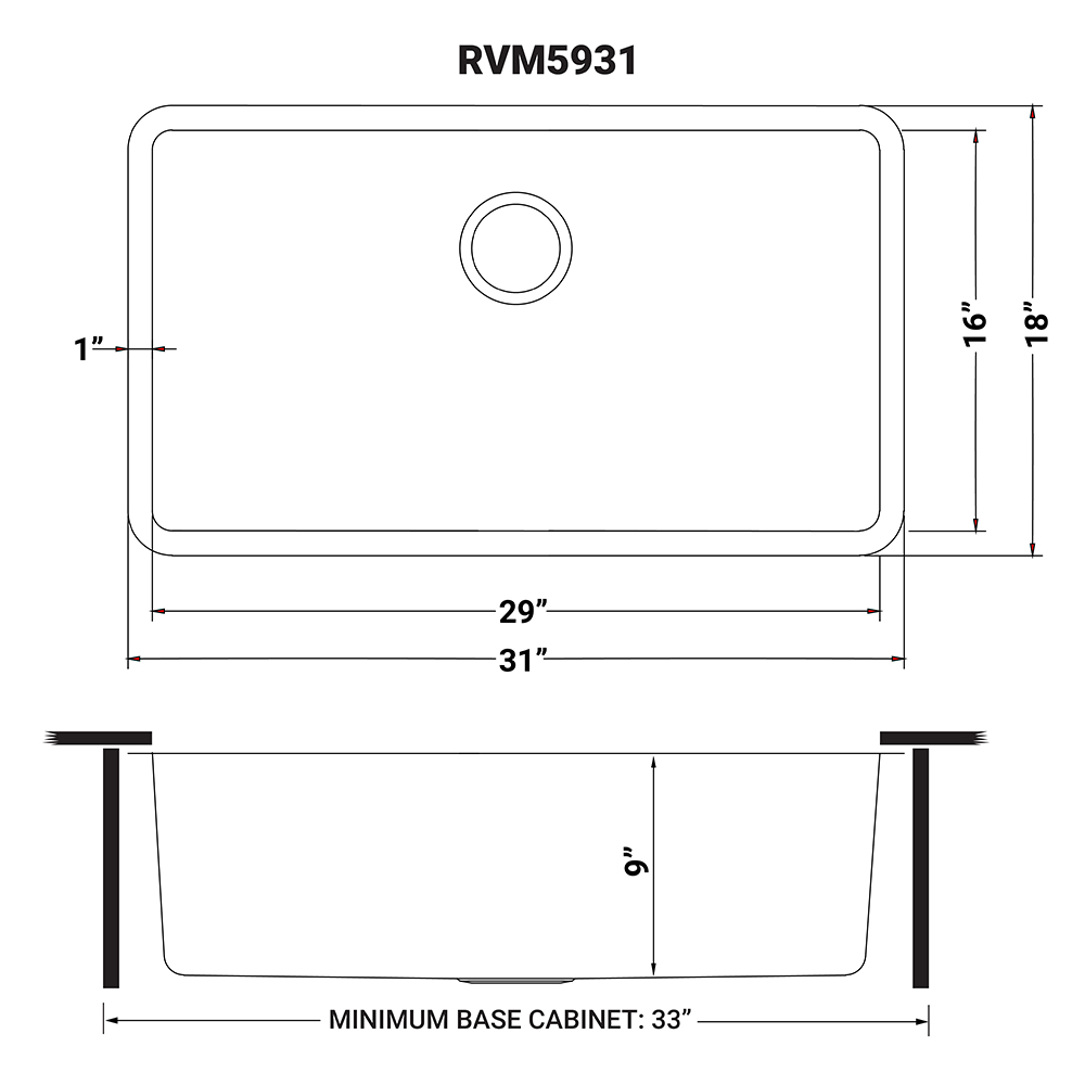 Ruvati 31-inch Undermount Kitchen Sink 16 Gauge Stainless Steel Single Bowl – RVM5931