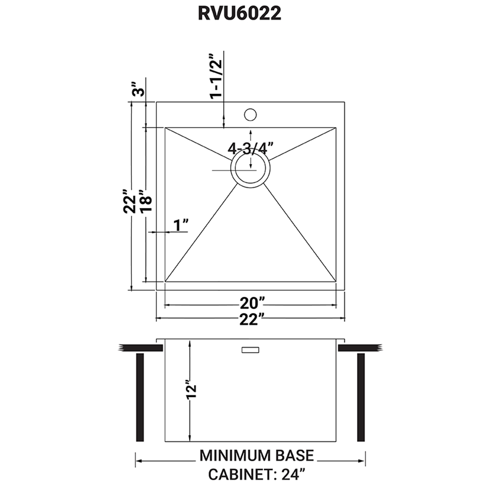 Ruvati Topmount Laundry 22″ x 22″ x 12″ Deep Utility Sink 16 Gauge Stainless Steel – RVU6022