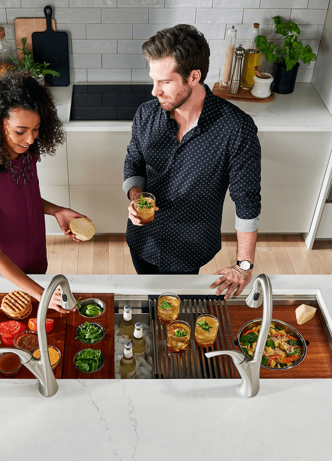 These accessories are designed to fit seamlessly with the sink, allowing for a customized and efficient workspace.